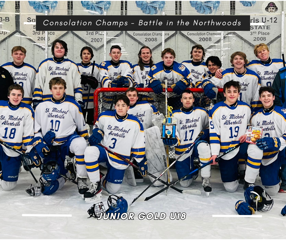 The Junior Gold U18 team had a strong showing last weekend in the Battle in the Northwoods , finishing with a 2-1 record and earning the Consolation Title. They faced tough competition, starting with a hard-fought 1-4 loss against Edgcumbe. The team bounced back in style with an 8-3 victory over the D155 Predators and capped off the weekend with a dominant 9-0 shutout win against Green Bay. Congratulations to the team for their resilience and success—way to bring home the Consolation hardware!