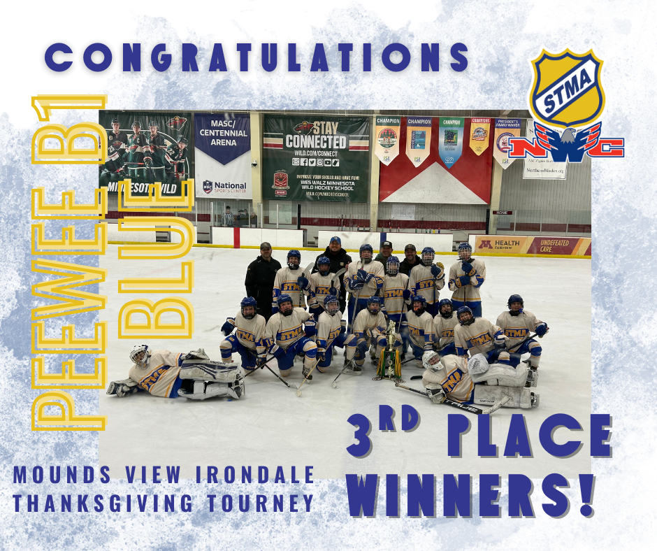 π₯ Mounds View Irondale Thanksgiving Tourney β 3rd Place! β¨Our Peewee B1 Blue team battled hard all weekend and earned a well-deserved 3rd place finish at the MVI Thanksgiving Tournament! π¦π