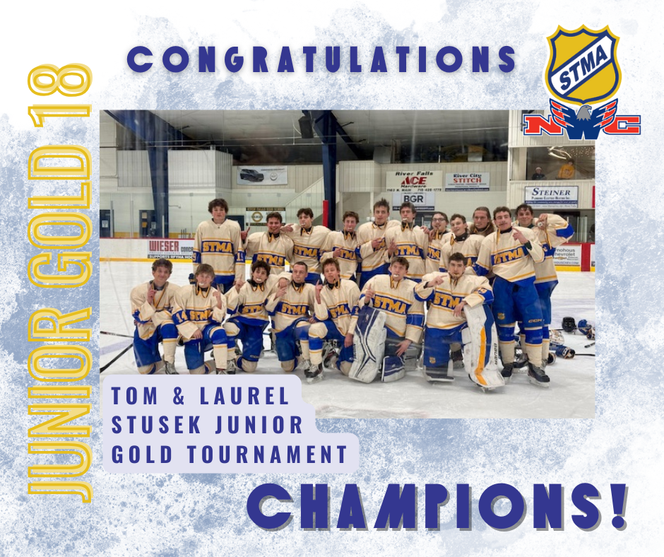 The Junior Gold 18 team capped off a dominant weekend by defeating Rogers 18A, 5–1, in the championship game to claim the title in Siren, Wisconsin! 🏒💙💛